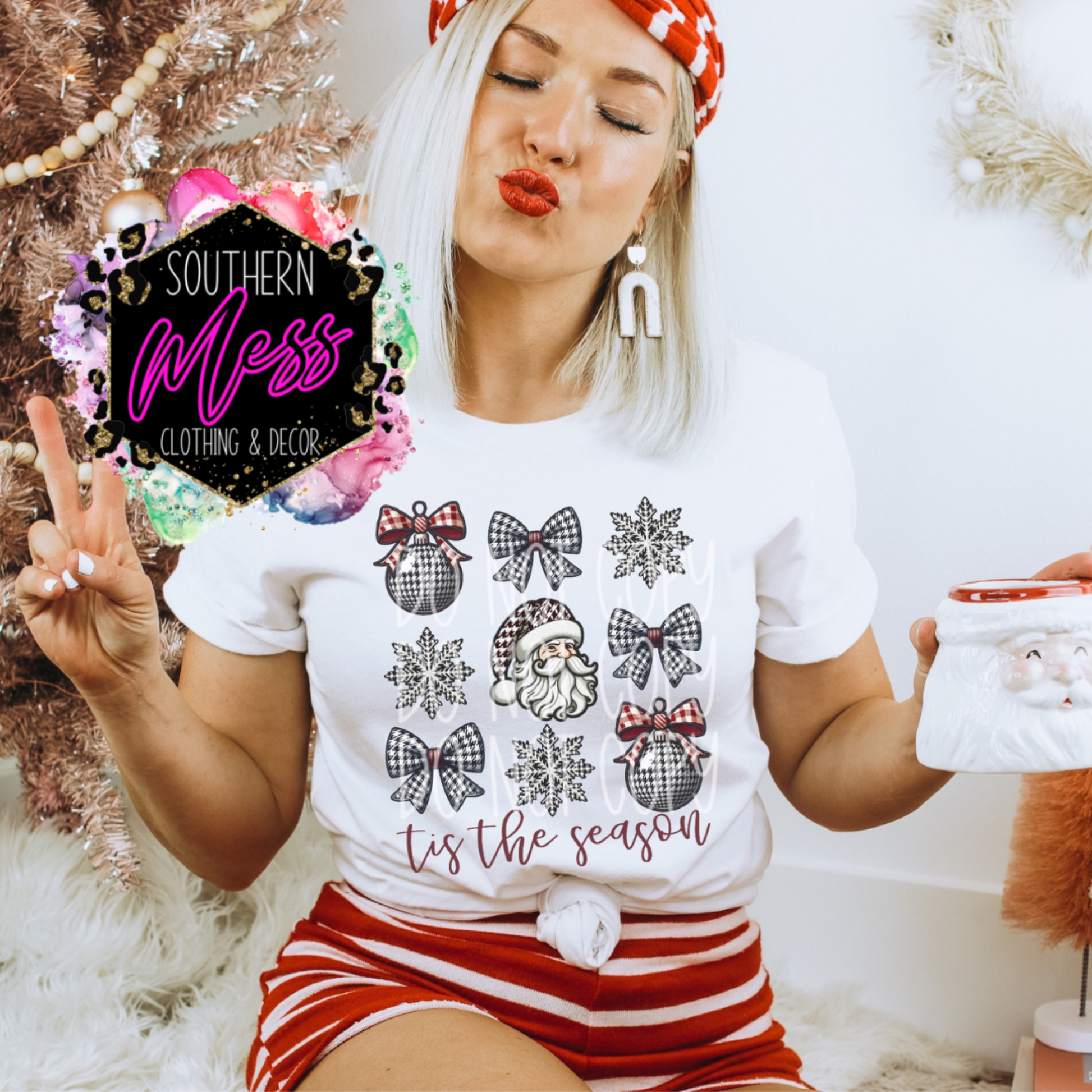 Get in the holiday spirit with our Southern Mess Clothing and Decor Santa Snowflakes Bow Tee! Made with soft material for great quality and featuring vibrant colors, this unisex fit tee is the perfect addition to your Christmas wardrobe. Bring some festive cheer wherever you go with this must-have shirt!